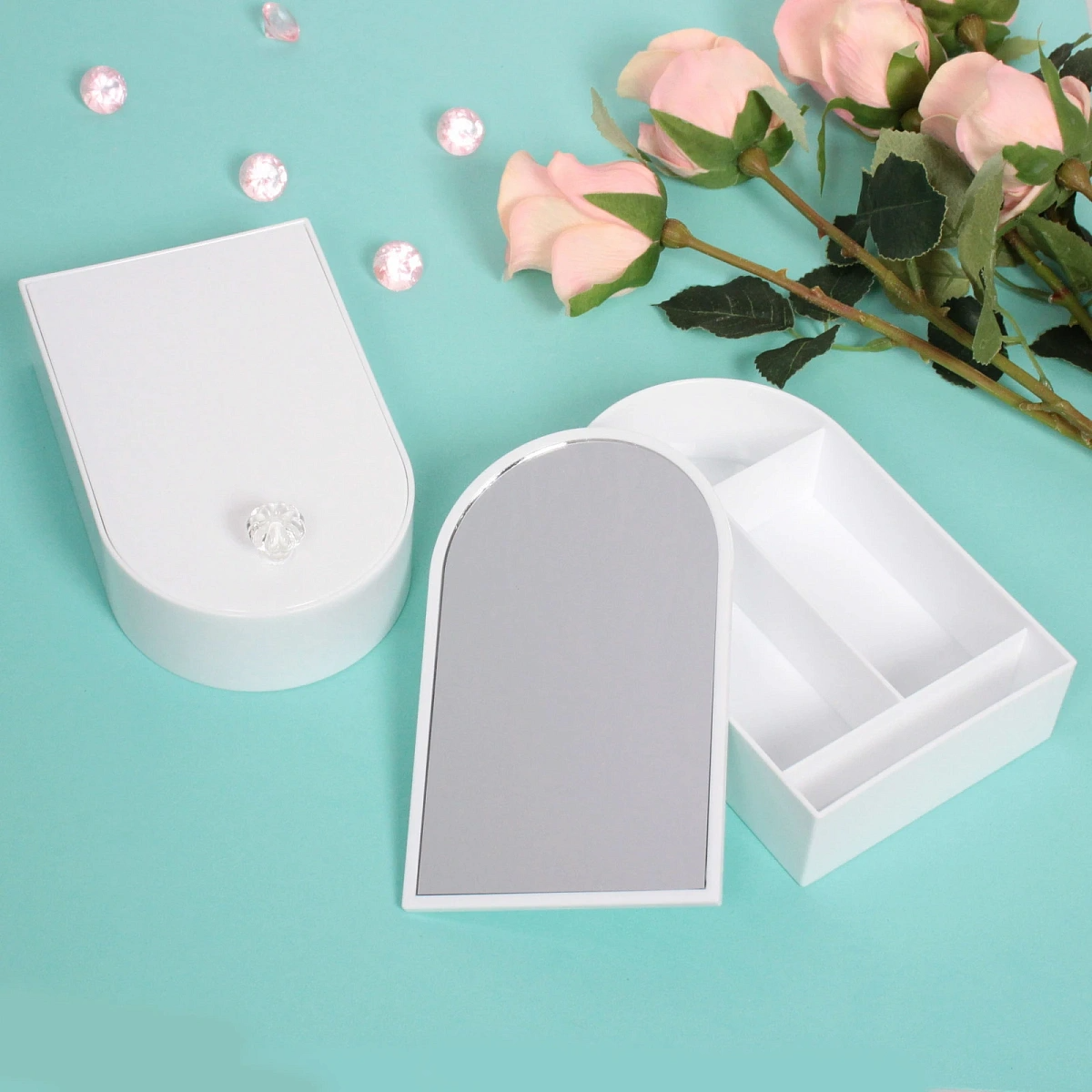 Зеркало настольное с органайзером для украшений "Beauty", цвет белый, зеленый, розовый, 17*10,5*4см