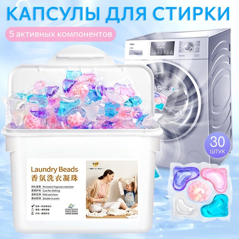 Капсулы для стирки белья 5 в 1 концентрированные LAUNDRY BEADS, контейнер 30 шт.