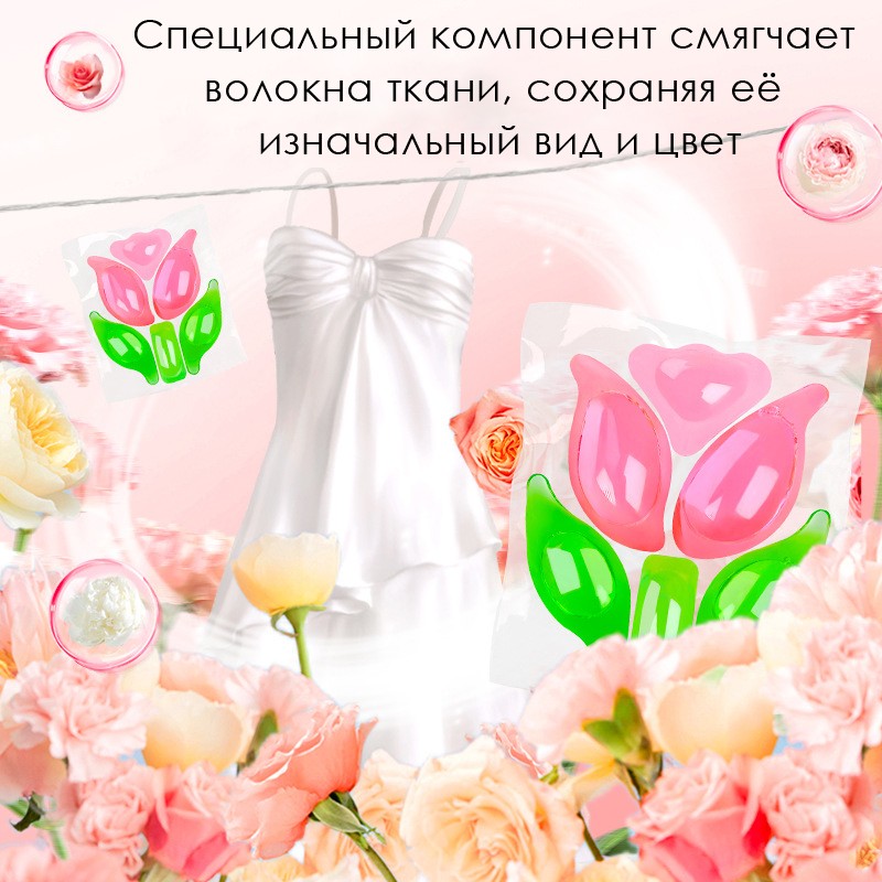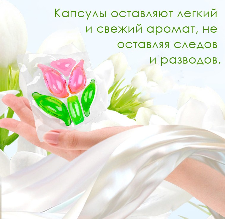Капсулы оставляют на белье легкий и свежий аромат, при этом не оставляя следов и разводов.