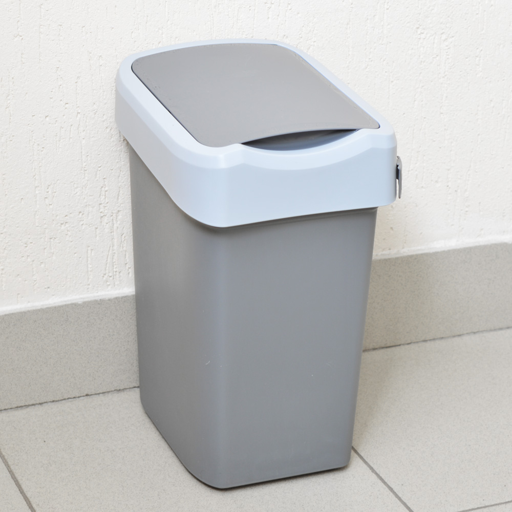 Удобная система открывания крышки позволит выбросить мусор в ведро даже с занятыми руками, просто толкнув створку вниз. Крышка может фиксироваться в открытом положении для крупного мусора. Контейнер имеет специальное крепление для мусорных пакетов, легко моется, блокирует неприятные запахи, препятствуя их распространению.