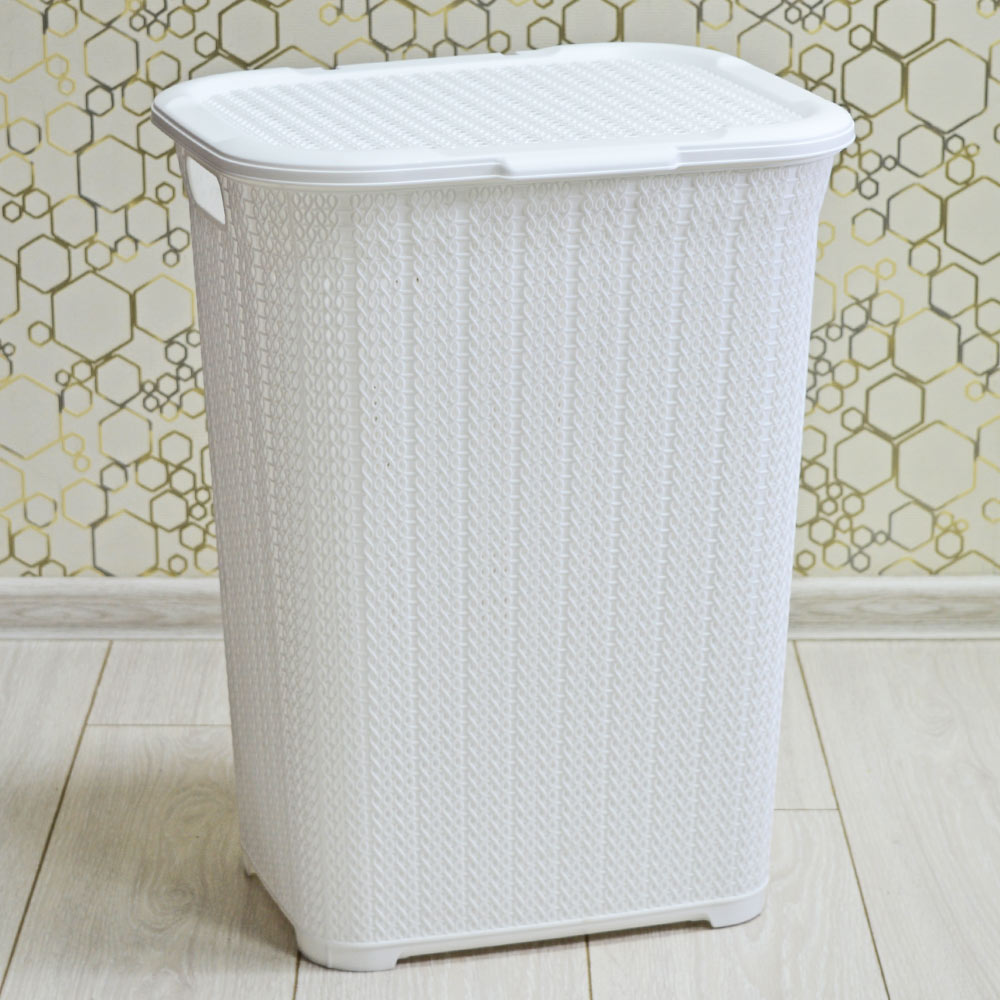 Корзина для белья 50л "Вязаный узор", цвет белый