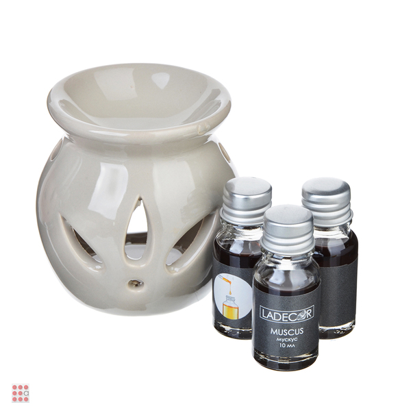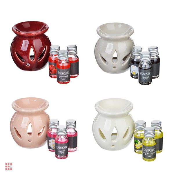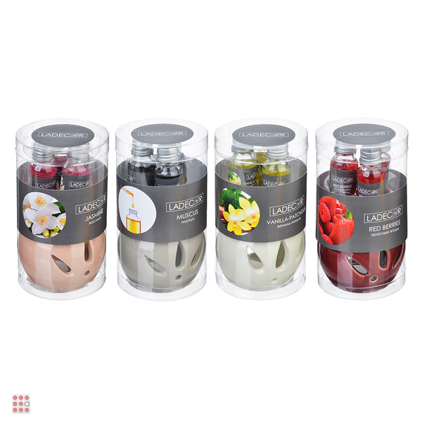 LADECOR Ароманабор лампа и масло, 3штx10мл, с ароматами красных ягод, ванили-пачули,жасмина, мускуса