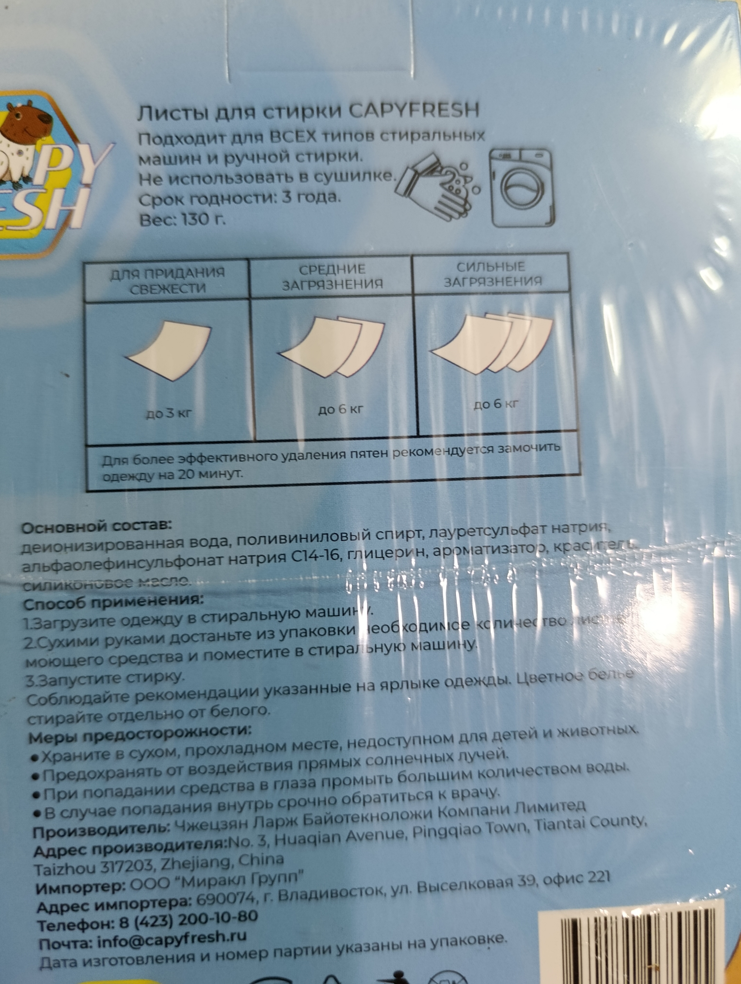 Отзывы и вопросы о товаре «АКЦИЯ Листы для стирки (32 шт) CAPYFRESH»