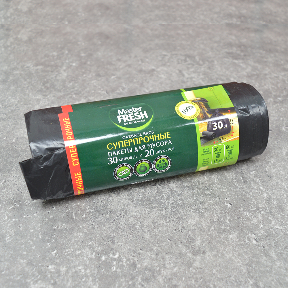 Мешки для мусора 30л 20шт 20мкм суперпрочные, усиленное дно, черные Master FRESH