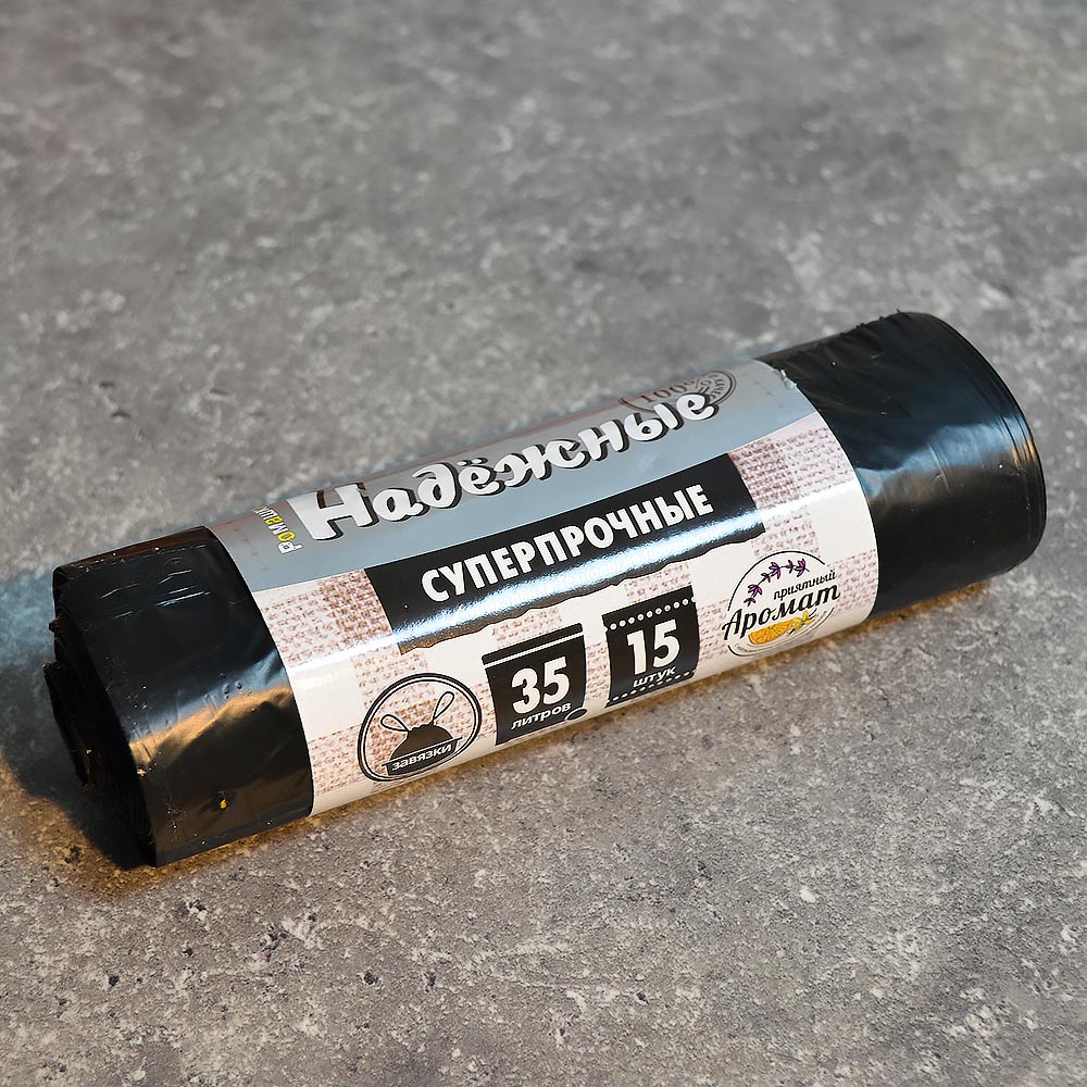 ! Мешки для мусора 35л 15шт ПСД черный с завязками "Надежные"