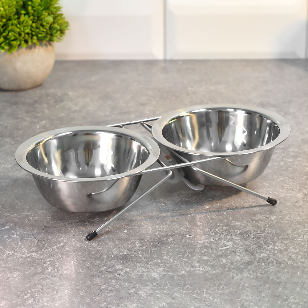 Миска для животных 2шт*300мл на подставке, нерж