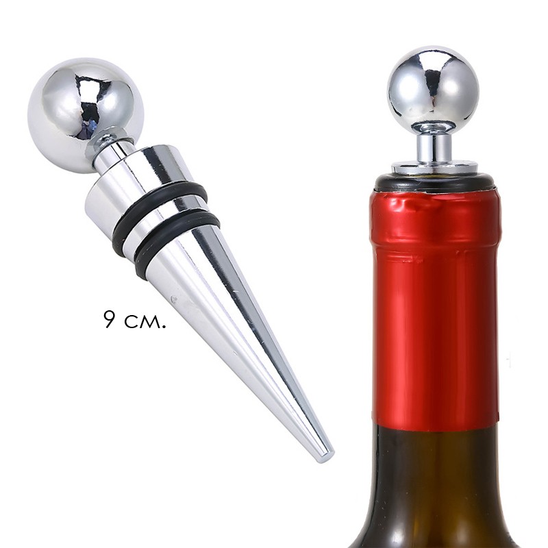 Многоразовая пробка-шар для бутылок вина, шампанского, масла и уксуса. Металл + силикон