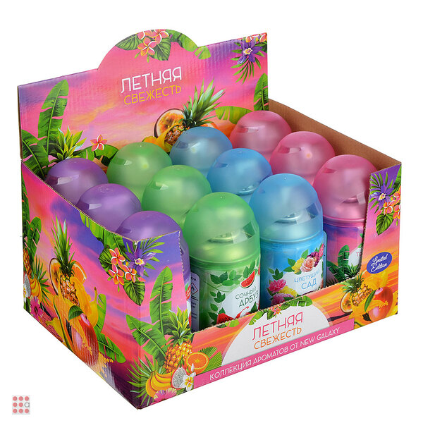 Аэрозольный освежитель воздуха с летним ароматом позволяет быстро и эффективно избавиться от неприятного запаха в комнате. Баллон-аэрозоль объемом 250 мл выполняет сразу 2 функции: нейтрализует запах, а затем наполняет воздух превосходной ароматной композицией. В среднем балон освежителя рассчитан на 2500 впрыскиваний.