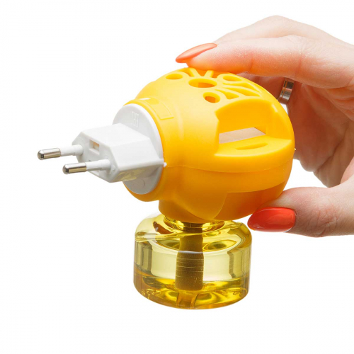 вынуть из упаковки картонную пластину, вложить в электроприбор и включить его в электросеть с напряжением 220 В. Средство начинает действовать через 5-10 минут после включения, полное уничтожение насекомых достигается примерно за 1 час. При открытых окнах или форточках электроприбор с пластиной можно оставлять включенным на всю ночь для уничтожения насекомых, залетающих в помещение. После окончания работы электроприбор выключить, пластину сохранить до следующего использования. Одна пластина рассчитана на работу в течение 9 часов. Замену пластину следует проводить, отключив электроприбор от сети.