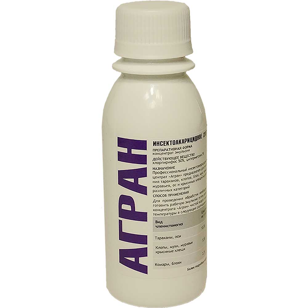 АГРАН – инсектоакарицидный 55% концентрат эмульсии в виде прозрачной жидкости желто-коричневого цвета.