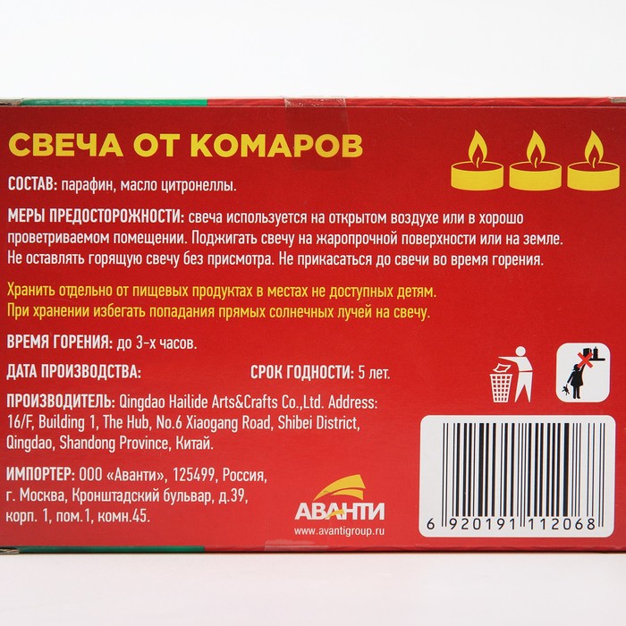 Антимоскитные свечи «Бдительный страж», набор 6 шт.