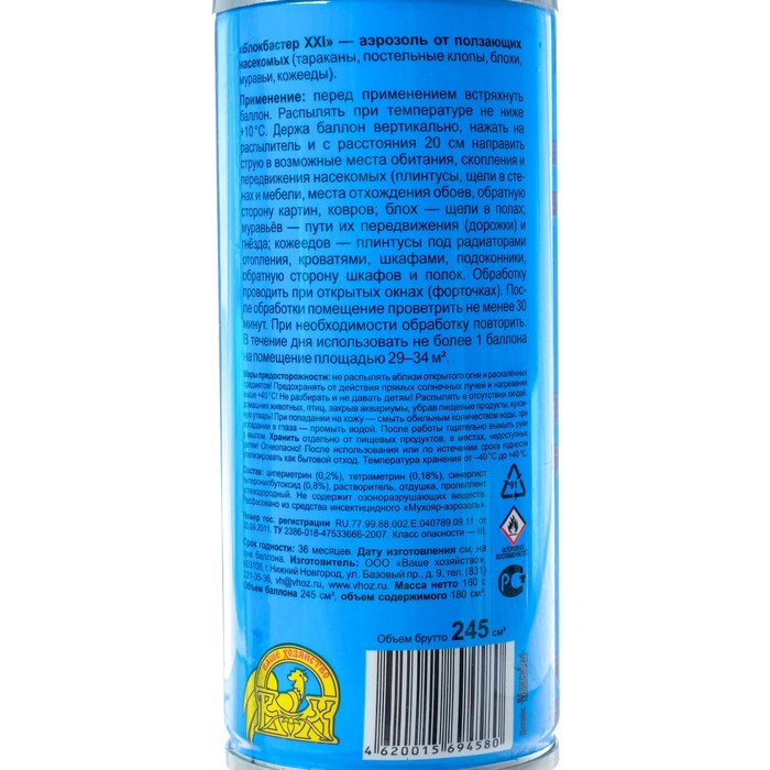 Аэрозоль Инсектицид «Блокбастер», для уничтожения ползающих насекомых, баллон, 245 мл
