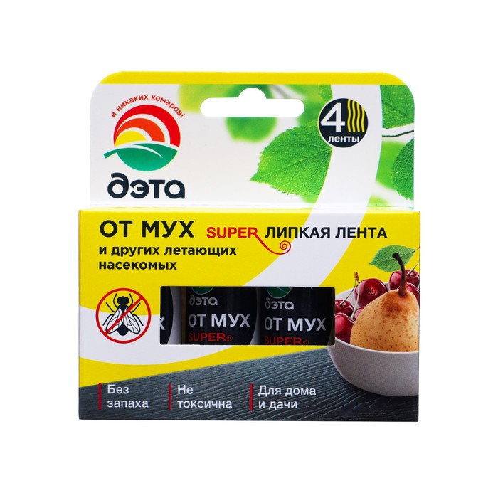 Лента от мух суперлипкая «Дэта», 4 шт.