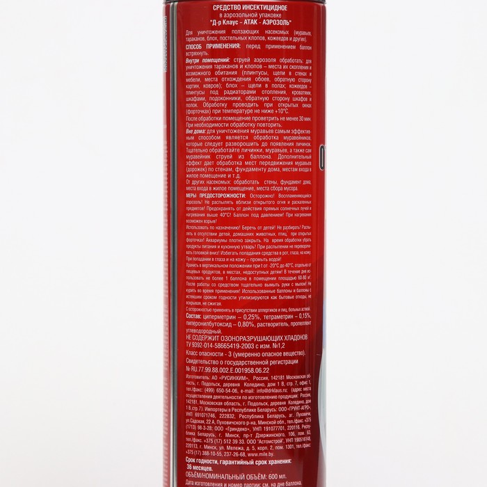 Аэрозоль от насекомых «Доктор Клаус», от муравьев, тараканов и других насекомых, 600 мл