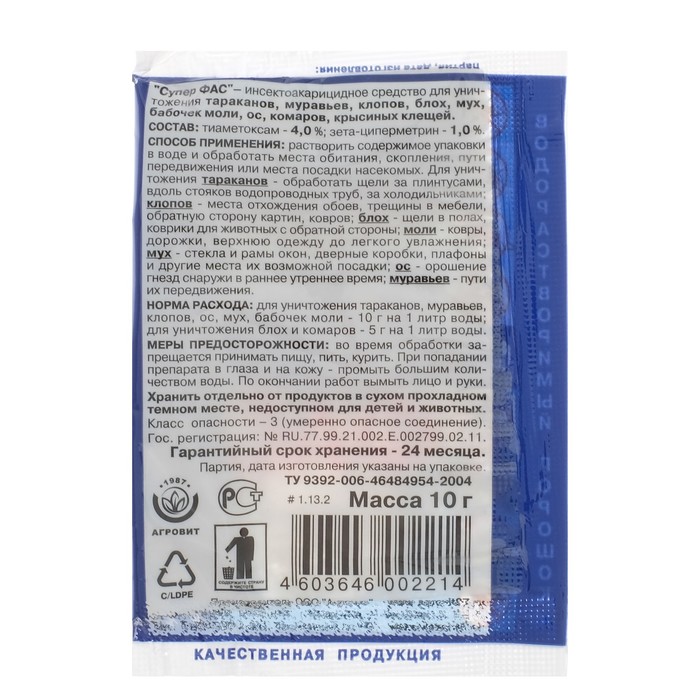 Средство от насекомых "Супер-Фас" бытовой водорастворимый порошок, 10 г
