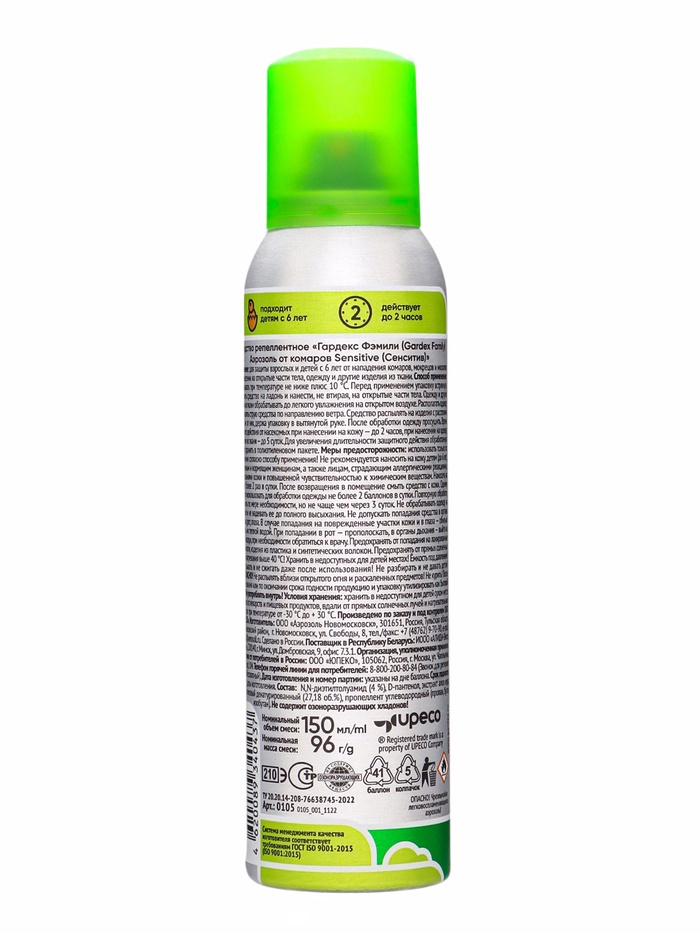 Аэрозоль от комаров Gardex Family. Sensitive, 150 мл