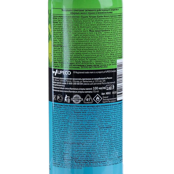 Аэрозоль Репеллент Gardex Naturin, от клещей и комаров, флакон, 100 мл