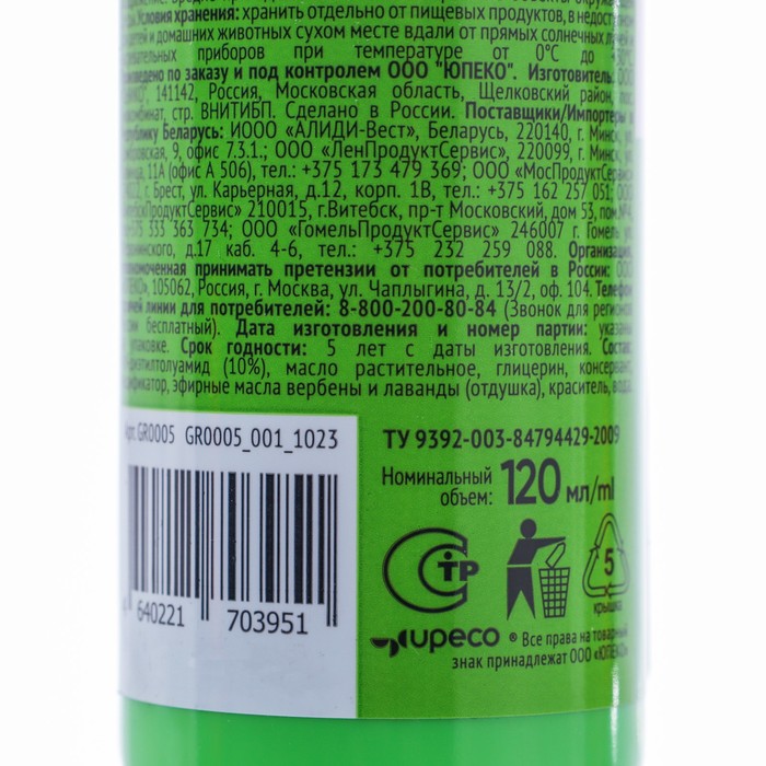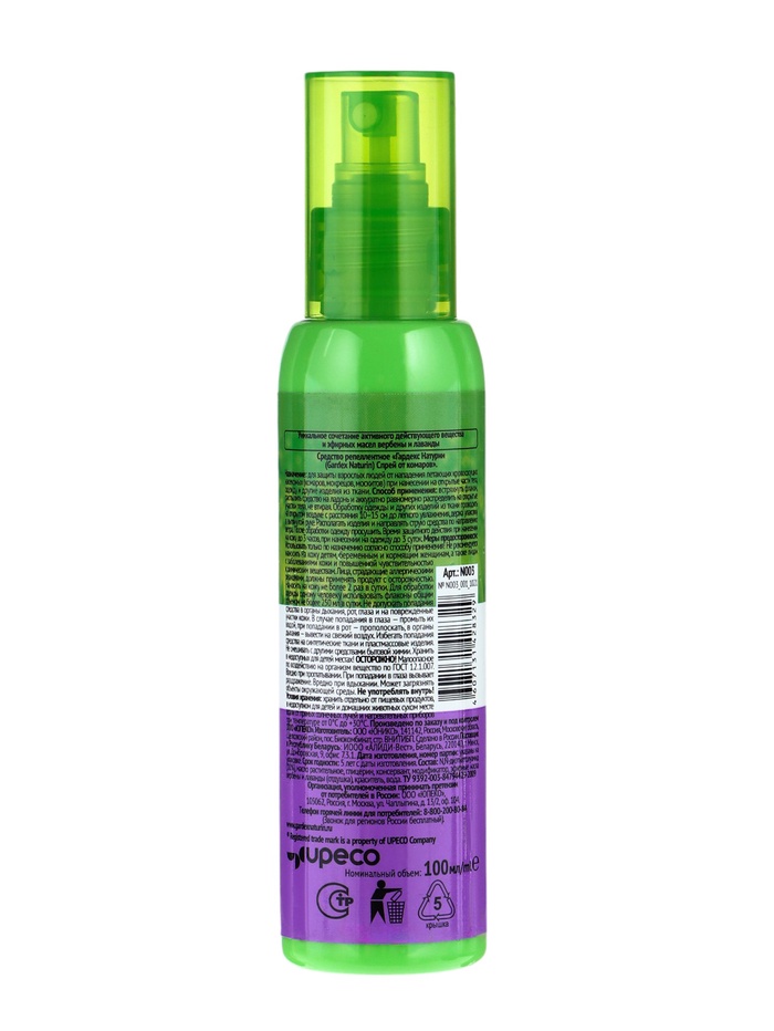Аэрозоль от торговой марки Gardex на отдыхе обезопасит вас от комаров, мокрецов и москитов. Особенности: защита до трёх часов при нанесении на кожу; не имеет в своём составе спирта; содержит эфирные масла репеллентных растений (вербены и лаванды). Состав: диэтилтолуамид, масло растительное, глицерин, консервант, модификатор, эфирные масла вербены и лаванды (отдушка), краситель, вода.Применение: Перед использованием встряхните баллон. Распыляйте препарат с расстояния 20‒25 см на одежду до лёгкого увлажнения. Используйте её только после окончания обработки и полного высыхания. Меры предосторожности: не допускайте попадания спрея в глаза, рот и на повреждённые участки кожи, в противном случае промойте их водой. Избегайте распыления на изделия из пластика и синтетических волокон.