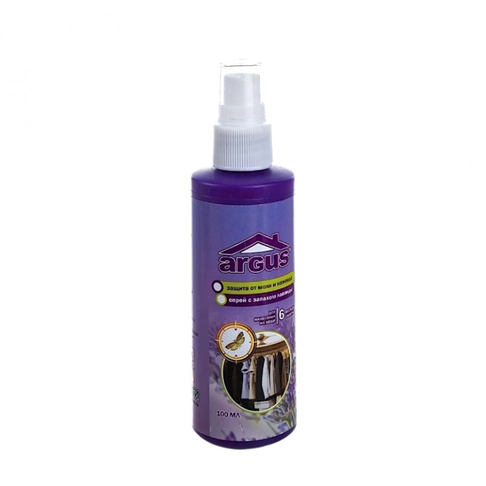Спрей Argus АНТИМОЛЬ — это эффективное средство для уничтожения моли и кожееда, обеспечивающее надежную защиту ваших вещей. С ароматом лаванды, этот спрей не только борется с вредителями, но и оставляет приятный свежий запах.