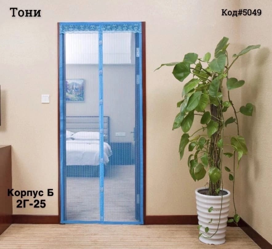 Две полупрозрачные створки москитной сетки легко, без щелей, смыкаются благодаря девяти парам магнитов, расположенным на стыках. Шторы позволяют легко проходить даже с занятыми руками, магниты при этом сами легко разомкнуться. Домашние животные также смогут беспрепятственно проникать сквозь створки. Москитные шторы не перекручиваются и всегда находятся в натянутом прямом положении.