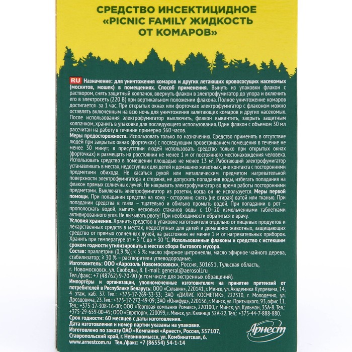 Дополнительный флакон-жидкость от комаров Picnic Family, с растительными экстрактами, 45 ночей, 30 мл