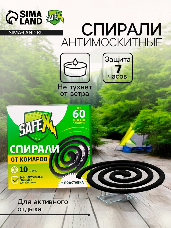 Антимоскитные спирали SAFEX: инструкция по применению и меры предосторожностиАнтимоскитные спирали SAFEX – это эффективное средство для борьбы с комарами, мошками и москитами. Они содержат действующее вещество, которое выделяется вместе с дымом и уничтожает насекомых. В данной статье мы расскажем о способе применения спиралей SAFEX, а также о мерах предосторожности при использовании этого продукта.Способ примененияИзвлеките спирали из коробки и осторожно разъедините. Отогните стойку на металлической подставке и плотно закрепите спираль на ней. Для этого на спирали предусмотрена прорезь. Подожгите конец спирали и задуйте пламя. Тлеющую спираль разместите на невоспламеняющейся поверхности на расстоянии не менее 1 м от людей. Спираль начинает действовать через 10-15 минут после начала тления. Спираль рассчитана на 7 часов непрерывной работы.Рекомендуется применять спирали на открытом воздухе или в хорошо проветриваемых помещениях. По окончании обработки спираль необходимо затушить и сохранить для дальнейшего использования.Меры предосторожностиХраните спирали отдельно от пищевых продуктов в месте, недоступном для детей и домашних животных. Не применяйте спирали в закрытых помещениях. Не рекомендуется использовать в присутствии людей, обладающих повышенной чувствительностью к аллергенам.В случае контакта с кожей тщательно промойте ее водой с мылом. Не допускайте соприкосновения горящей спирали с тканью, бумагой или другими легковоспламеняющимися материалами.Использование антимоскитных спиралей SAFEX – это эффективный способ защиты от комаров, мошек и москитов. Однако, необходимо соблюдать меры предосторожности при использовании данного продукта. Спирали должны храниться в месте, недоступном для детей и животных, а также не следует использовать их в закрытых помещениях или в присутствии людей, обладающих повышенной чувствительностью к аллергенам. При соблюдении всех рекомендаций, антимоскитные спирали SAFEX помогут Вам провести летние вечера без дискомфорта от насекомых.Состав: d-аллетрин, краситель, инертная основа.