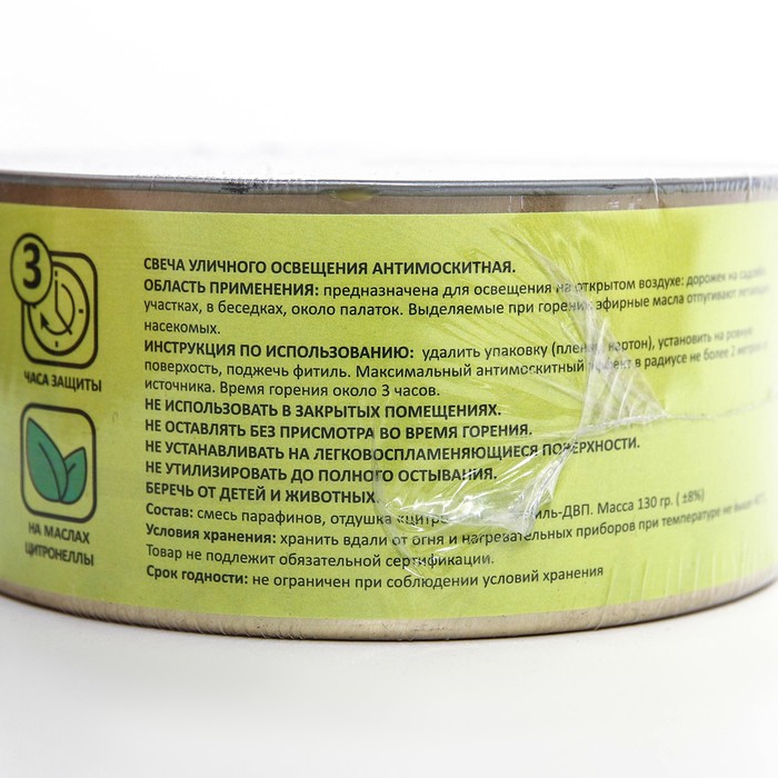 * Время горения свечи около 3 часов. Максимальный антимоскитный эффект в радиусе не более 2 метров от источника.