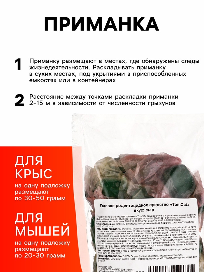 Пожалуйста, храните средство в недоступном для детей и домашних животных месте. При обращении с приманкой используйте перчатки для безопасности.