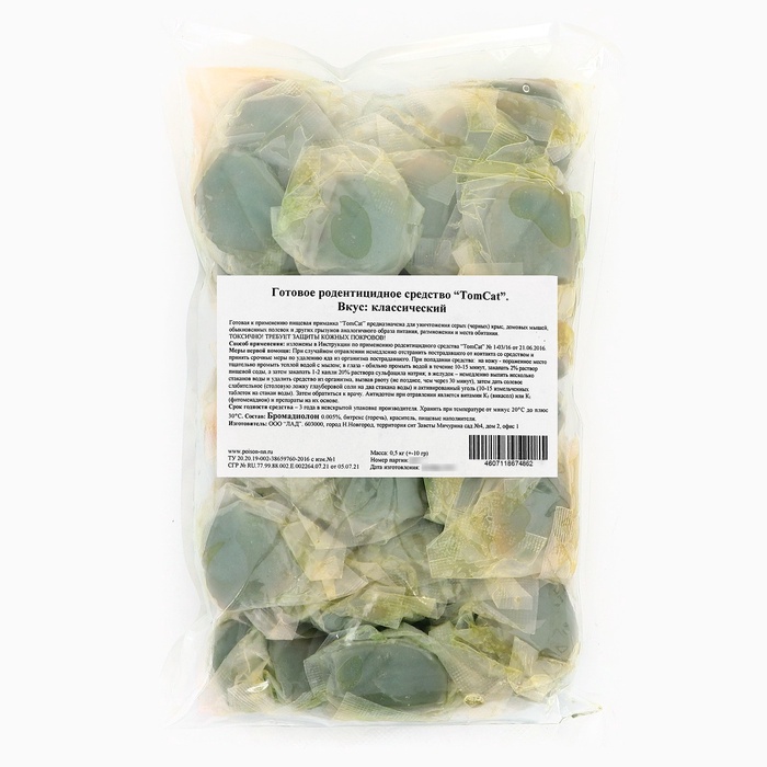 Тесто-брикеты от грызунов «ТОМ КОТ», микс вкусов, 0.5 кг