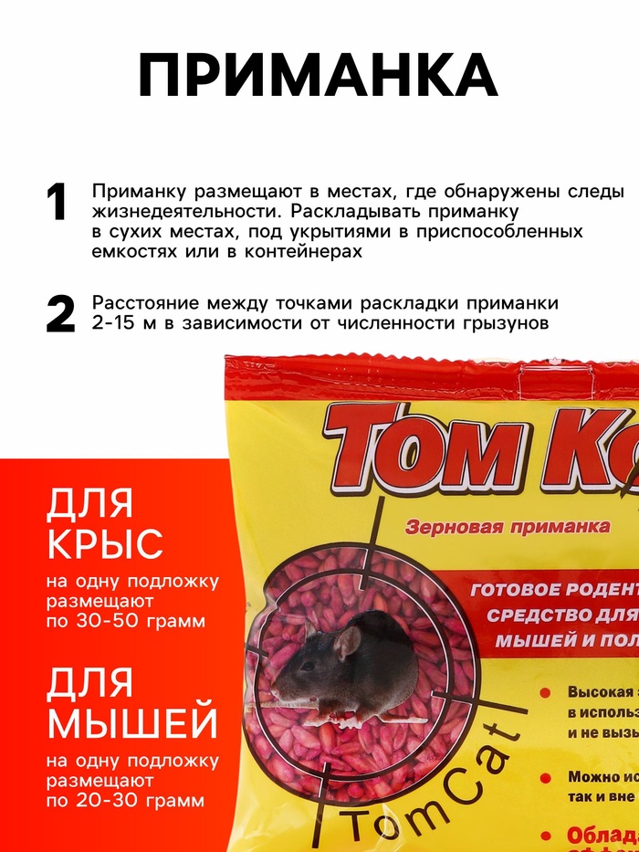 * Эффективно ликвидирует грызунов благодаря тщательно подобранным компонентам.