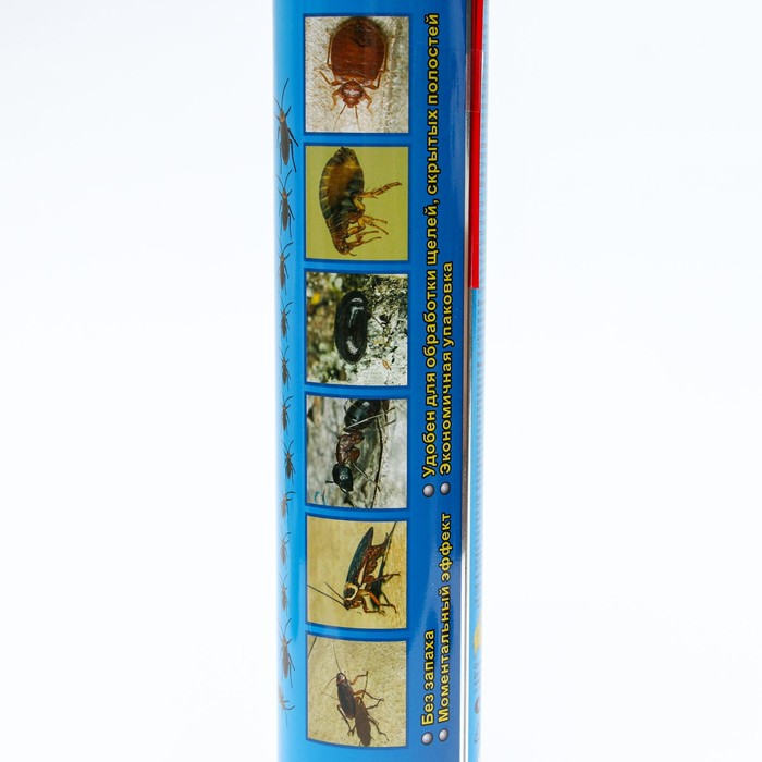 Струей аэрозоля с расстояния 20 см обработать: для уничтожения тараканов и клопов — места их скопления и возможного обитания (плинтусы, щели в стенах и мебели, места отхождения обоев, обратную сторону картин, ковров); блох — щели в полах; муравьёв — пути их передвижения (дорожки) и гнёзда; кожеедов — плинтусы под радиаторами отопления, кроватями, шкафами, подоконники, обратную сторону шкафов и полок.