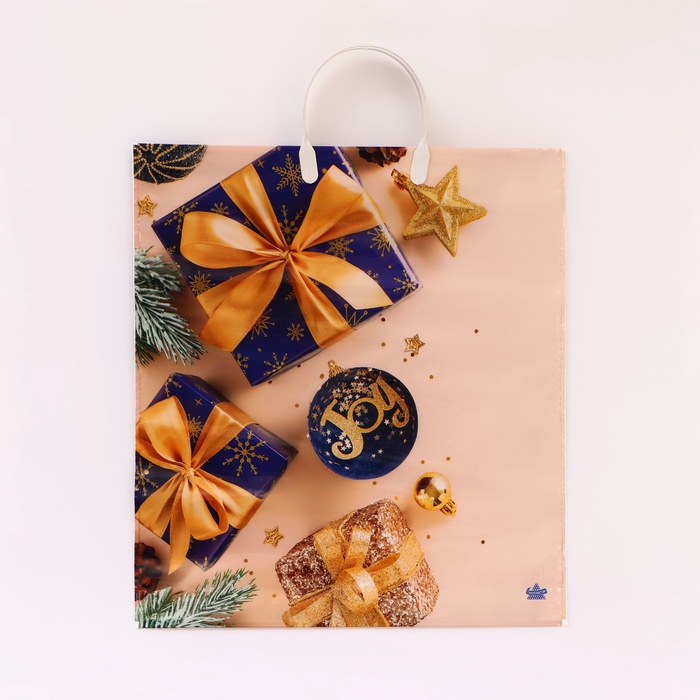 Пакет подарочный новогодний «Бежевое настроение», полиэтиленовый с пластиковой ручкой, 44×40 см