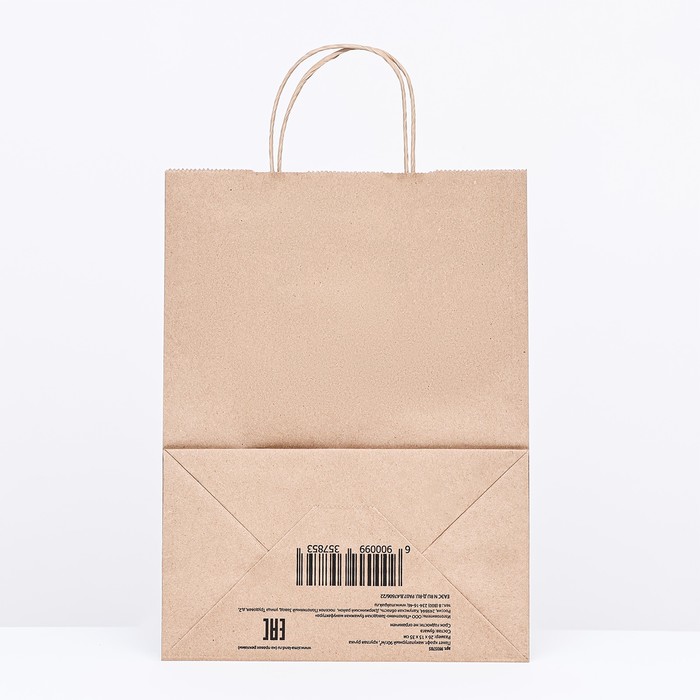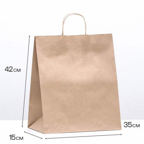 Пакет бумажный крафт 90 г/м², круглая ручка 26×15×35 см