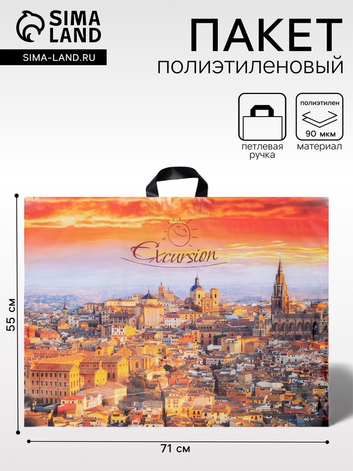 Пакет «Экскурсия», полиэтиленовый с петлевой ручкой, 71×55 см, 90 мкм