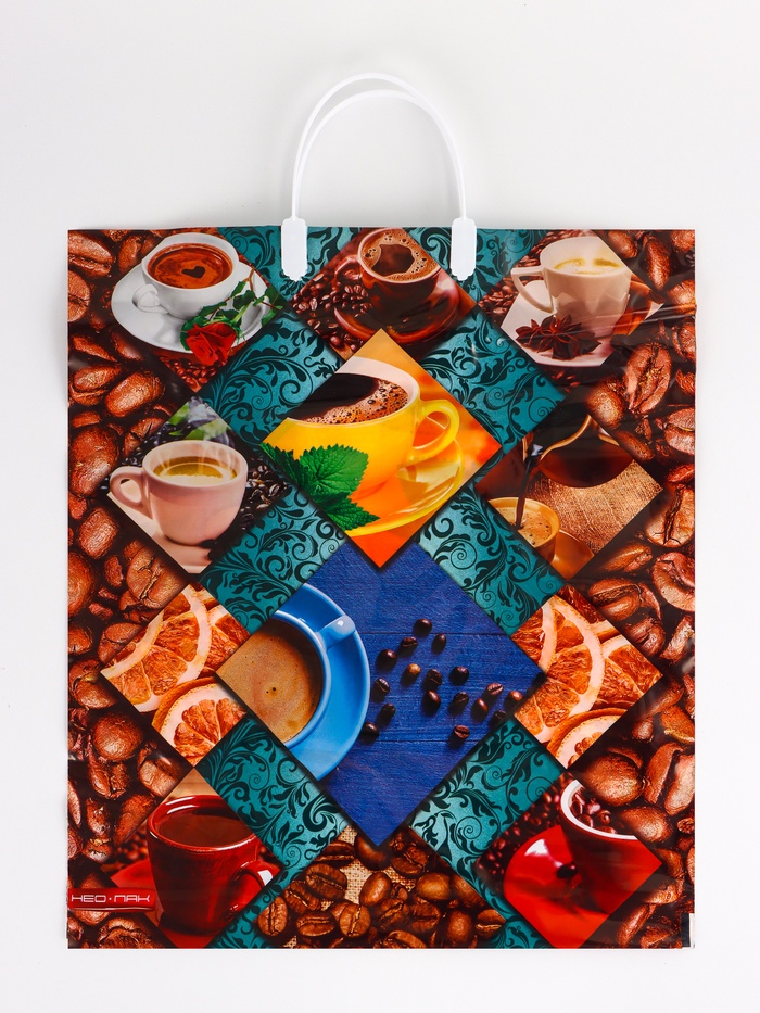 Пакет «Кофейное настроение», полиэтиленовый с пластиковой ручкой, 38×44 см, 90 мкм