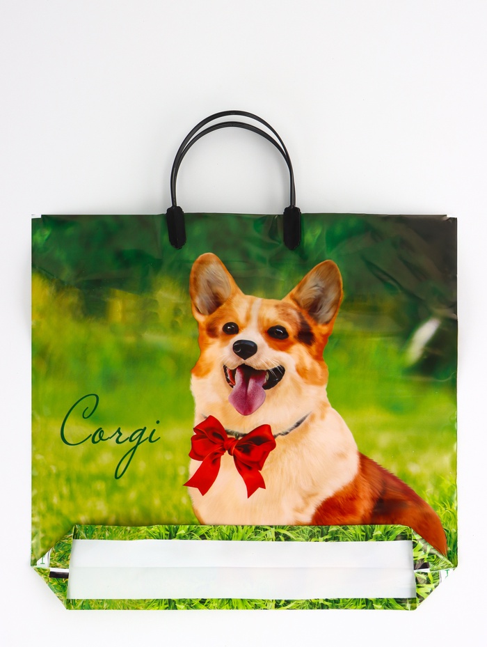 Пакет «Корги», полиэтиленовый, пластиковая ручка, 37×35 см, 90 мкм