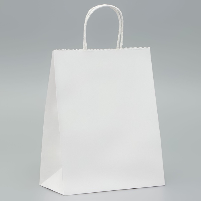 Пакет крафт без печати, белый, круглая ручка 22×12×28 см