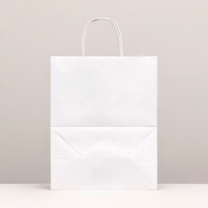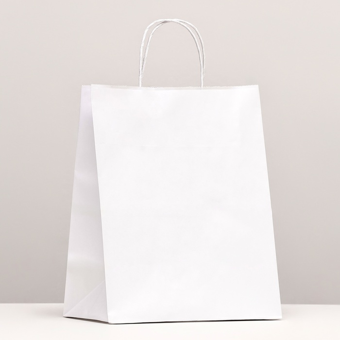 Пакет крафт без печати, белый, круглая ручка 24×14×28 см