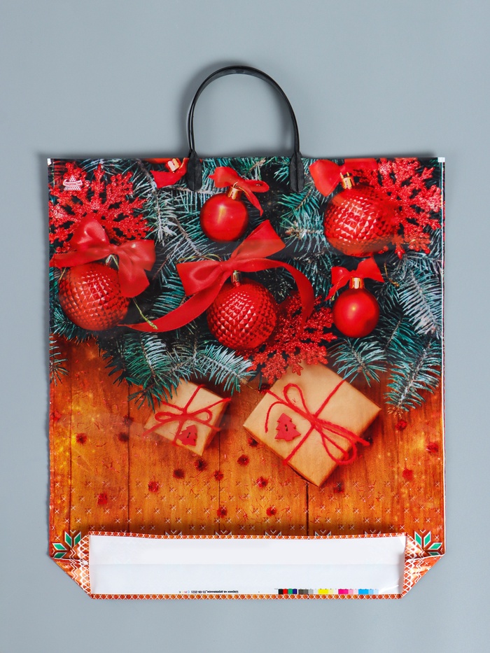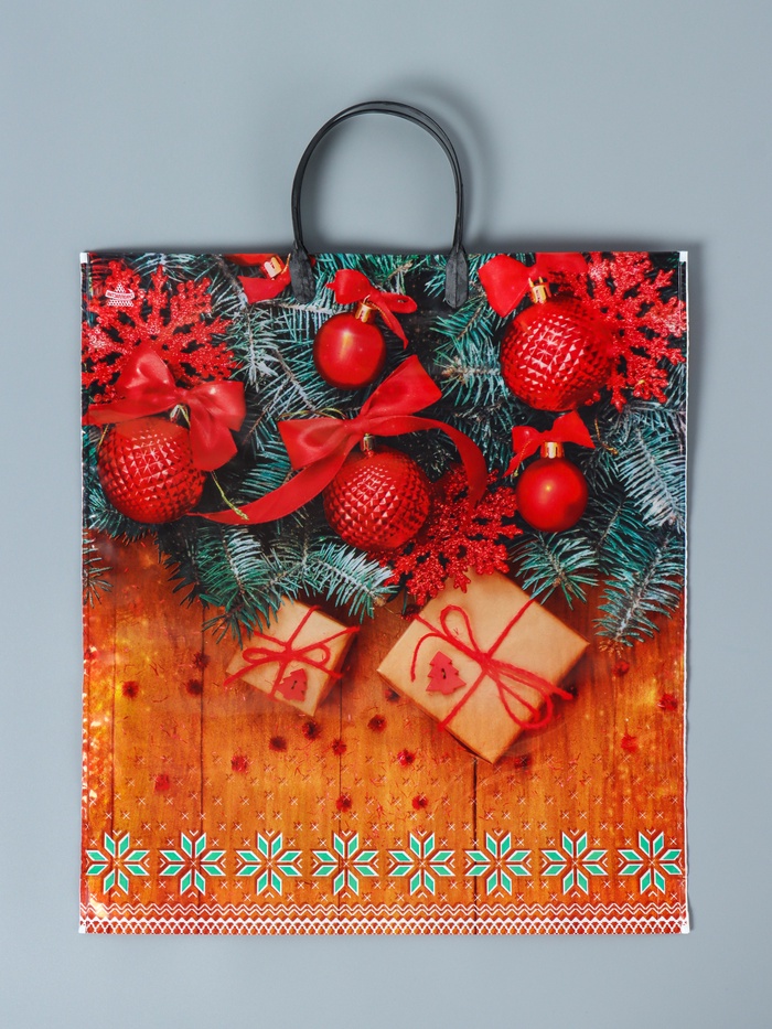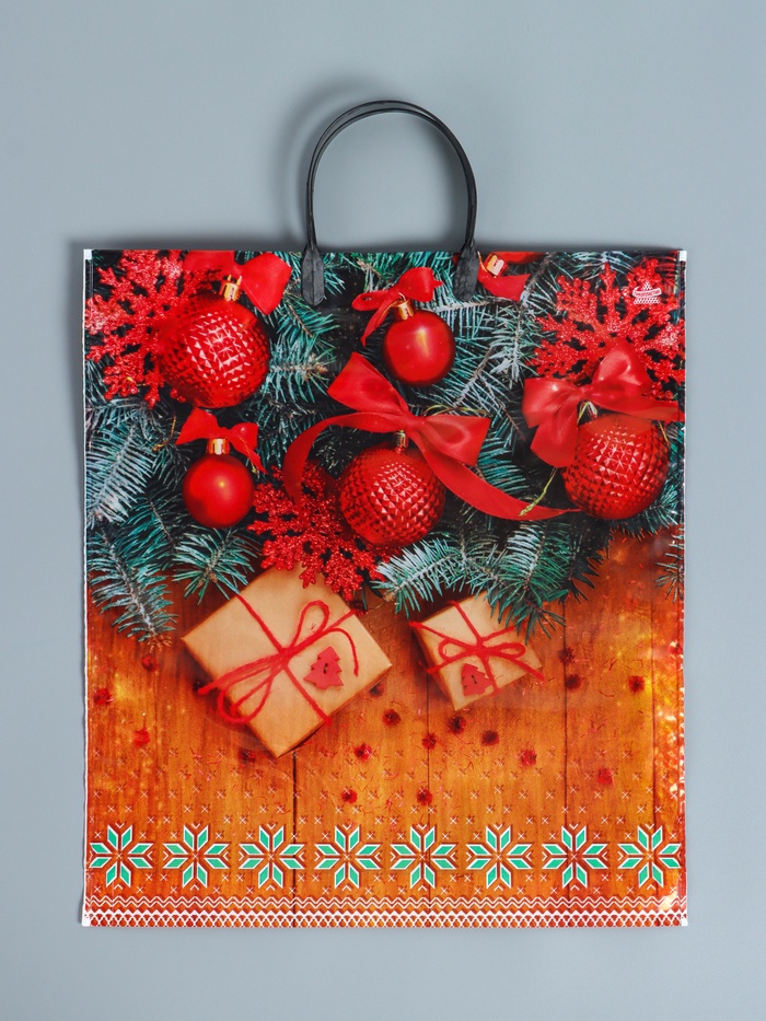 Пакет новогодний «Шарики на деревянном», полиэтиленовый с пластиковой ручкой, 44×40 см