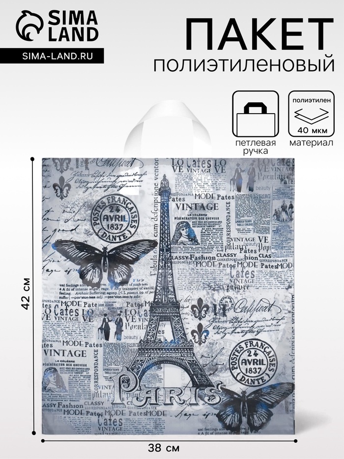 Пакет «Парижский день», полиэтиленовый с петлевой ручкой, 38×42 см, 40 мкм