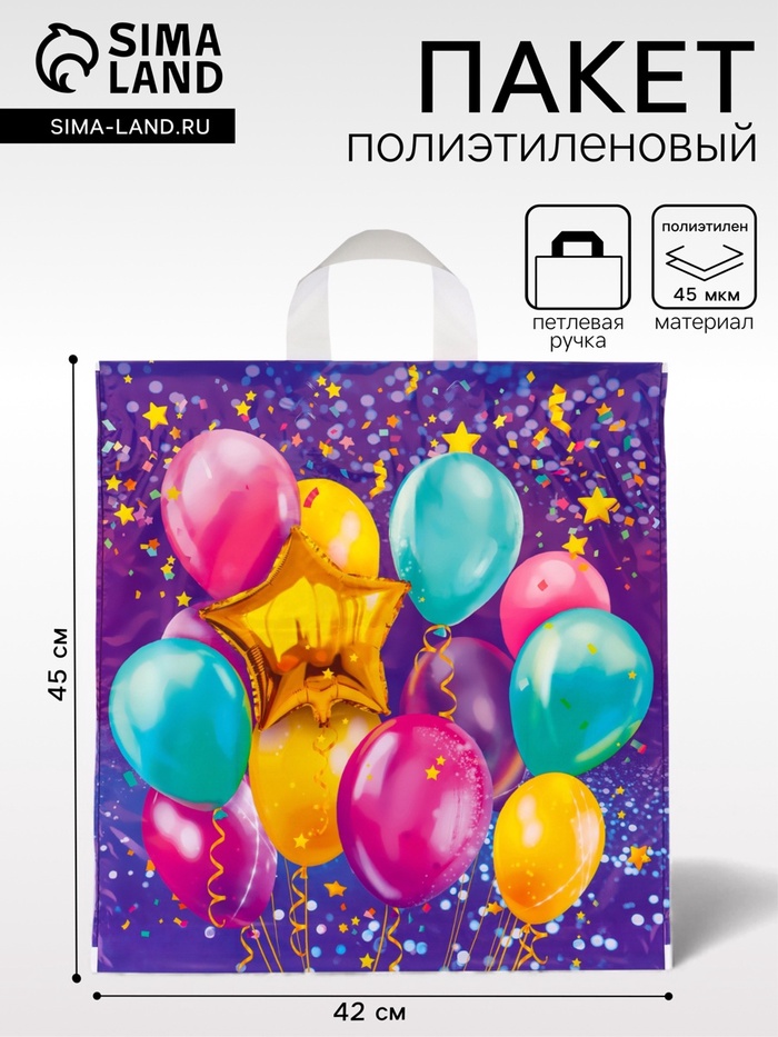 Пакет подарочный «Эмоции», полиэтиленовый с петлевой ручкой, 42×45 см, 45 мкм