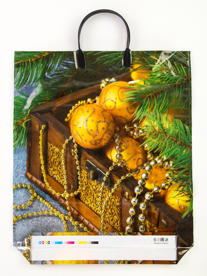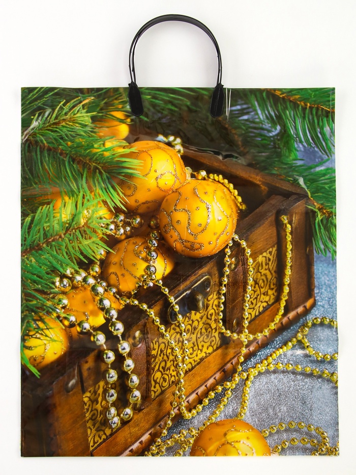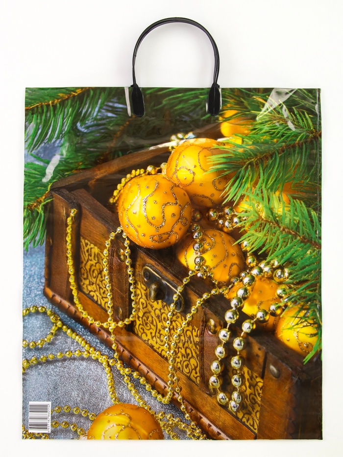 Пакет подарочный «Новогодние сокровища», полиэтиленовый с пластиковой ручкой, 38×45 см, 90 мкм