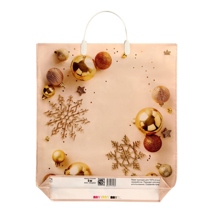 Пакет подарочный новогодний «Новогодний блеск», полиэтиленовый с пластиковой ручкой, 44×39 см, 100 мкм