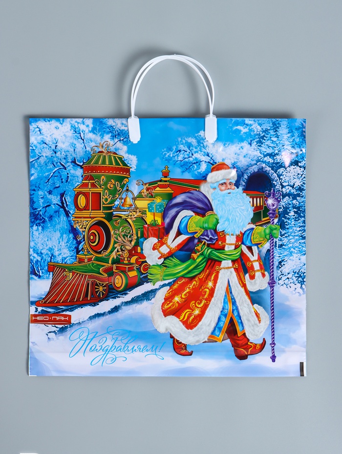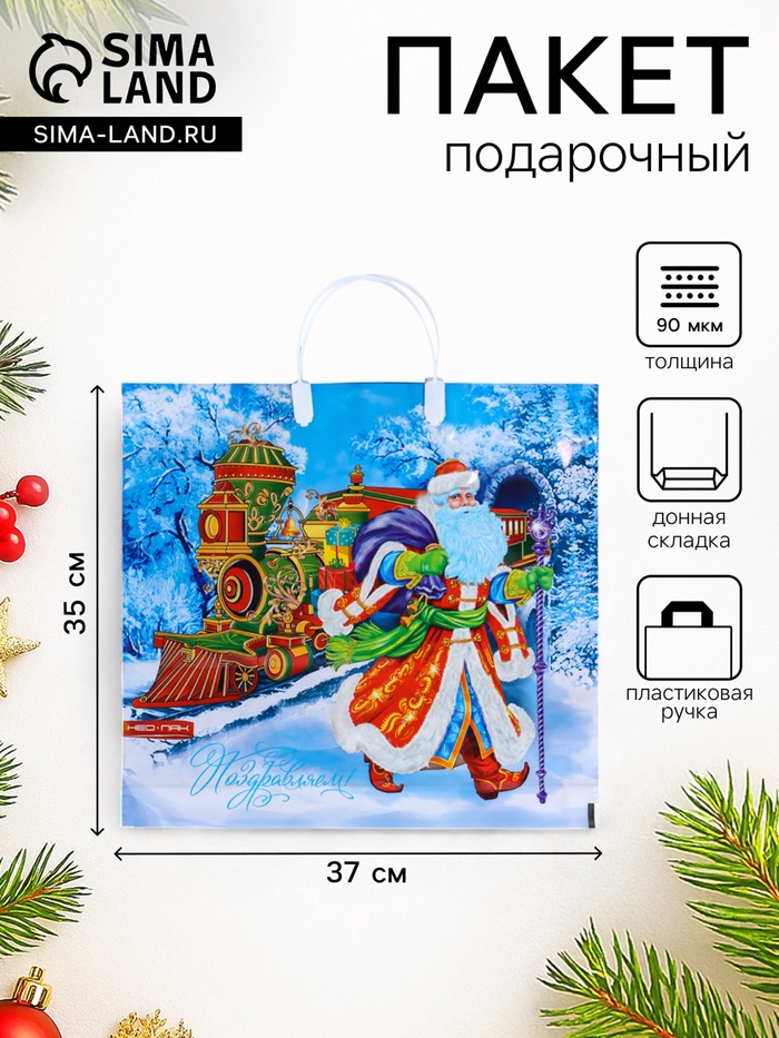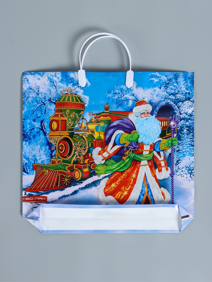 Пакет подарочный новогодний «Сказочный поезд», полиэтиленовый с пластиковой ручкой, 37×35 см