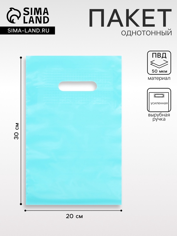 Пакет полиэтиленовый с вырубной ручкой, Бирюзовый 20-30 См, 50 мкм