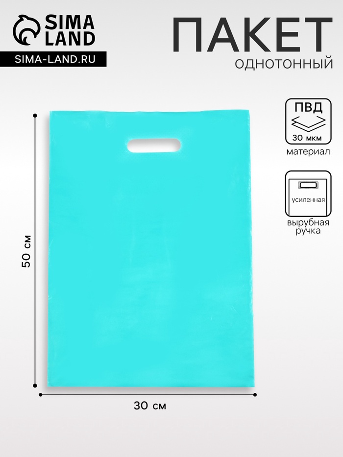 Пакет полиэтиленовый с вырубной ручкой, Бирюзовый 30-40 См, 30 мкм