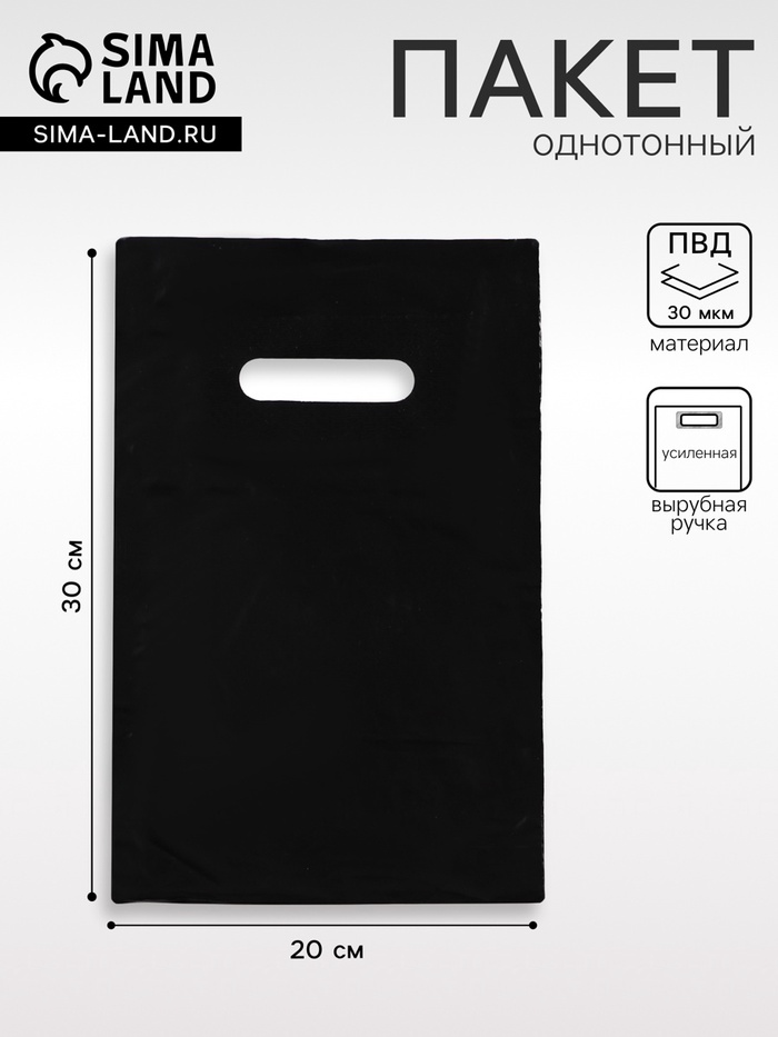 Пакет полиэтиленовый с вырубной ручкой, Черный 20-30 См, 30 мкм