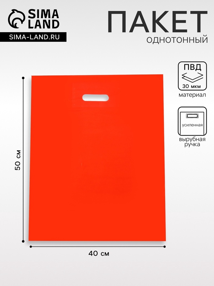 Пакет полиэтиленовый с вырубной ручкой, Красный 40-50 См, 30 мкм