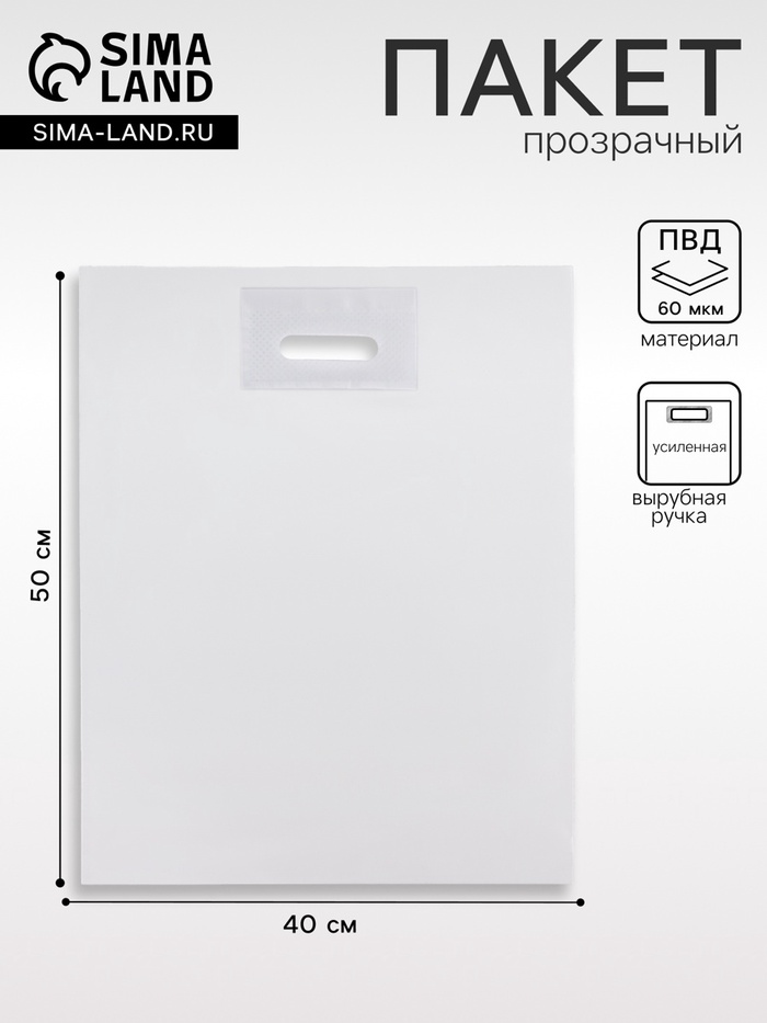 Пакет полиэтиленовый с вырубной ручкой, прозрачный 40-50 См, 60 мкм