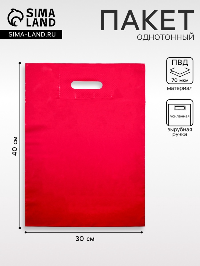 Пакет полиэтиленовый с вырубной ручкой, Розовый 30-40 См, 70 мкм